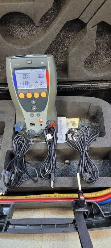 Analyzátor testo 560 navíc nabízí funkci měření vakua pro uvedení chladicích zařízení do provozu. Přístroj je po kompletní výměně těsnění a je plně funkční. Lze nahrát i nové typy chladiva.